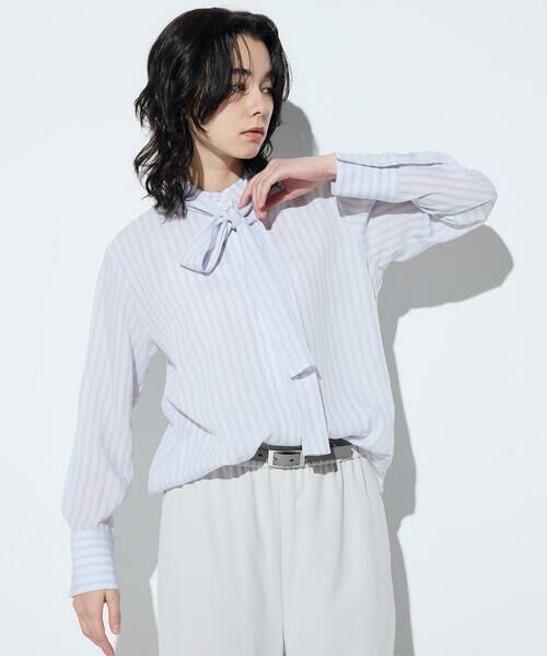 〔 TALLサイズ 〕 リヨセルストライプ ボウタイブラウス
