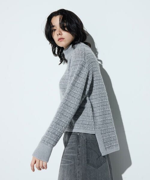 モヘアブレンドヤーンが"直接肌に触れない"裏側に出る様に編む事で、首回りのチクチク感を軽減しています。