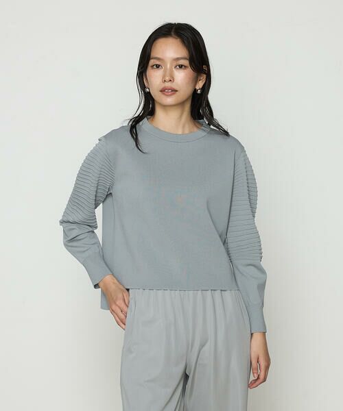 袖はバナナスリーブ(袖山ラインはカーブライン、脇袖はすっきりしたシルエット)なので、ボリューム袖でも着ぶくれせずに美しいシルエットで、アウターにインしても邪魔になりません。