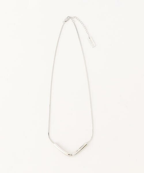 メタルのパイプをひねったようなV字モチーフをチェーンに通したデザインのショートネックレスです。