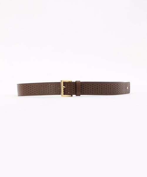 ソフトタイプのスムースレザーを張り合わせ、全体に小さなパンチングを施したシンプルなストレートベルトです。