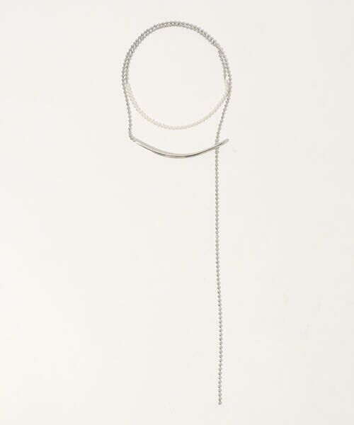 部分的にパールを組み合わせているのでパール部分をチョーカーのように首に沿わせて、ボールチェーンをぐるりと首に回し二連にすると程よいバランスで付けられます。