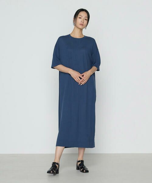 《デザイン》Vガゼットがポイントのニットワンピースです。身幅とアームホールがゆったりとし、Iラインシルエットで身体のラインをひろいにくいのが特長です。抜け感のあるドロップショルダーでリラックスした着心地です。《素材》強撚糸を使用しシャリっとした肌触りが特長の糸です。肌離れが良く、ドライタッチで快適に着こなせます。