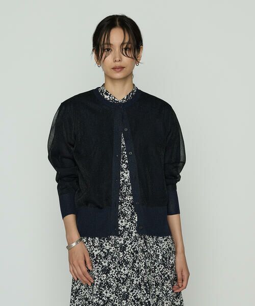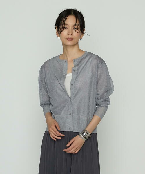 少し肌寒い日や冷房対策にも快適な二重編みラメニットカーディガンです。