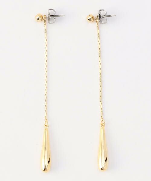 オリジナルしずく型パーツに繊細なチェーンを組み合わせたロングピアスです。