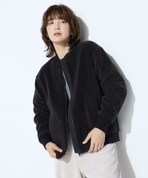 まるでシープのような表面感で、コート前に着るアウターとして、大人っぽく着れるように丈やサイジングはジャストめにしてあらゆるボトムスと合わせやすくしています。