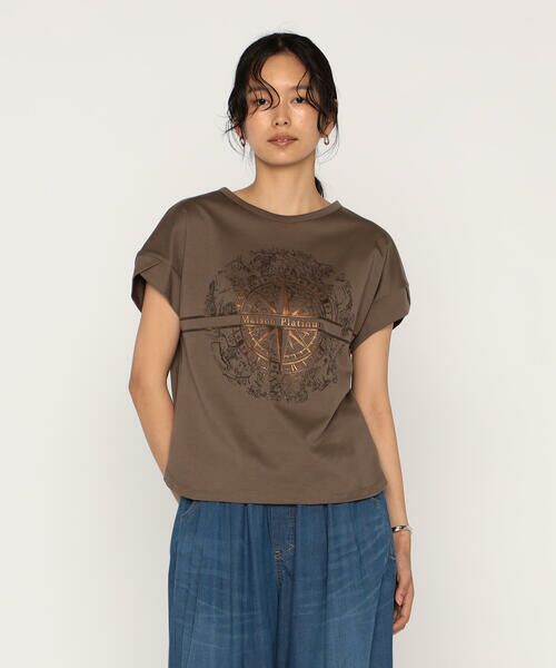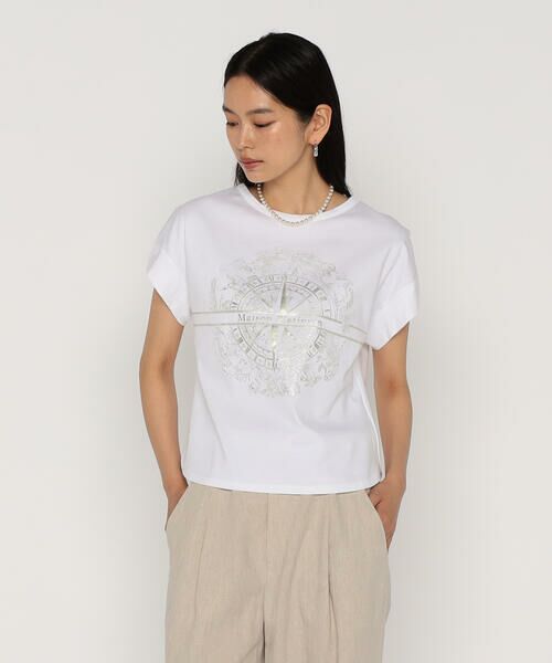 存在感のある繊細で美しい羅針盤柄オリジナル箔プリントの、コットンハイゲージポンチロゴプルオーバーです。