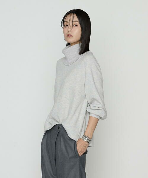 スヌードは高さがあり、付けるとゆったりとしたオフタートルのようなシルエットになります。