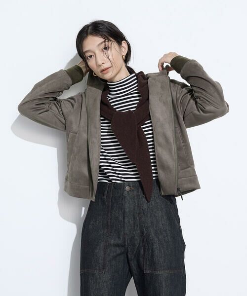 袖口は同色のニットリブでブルゾン用に仕立て、裾はリブを付けないことで裾は絞らず、すっきりとしたシルエットにしています。