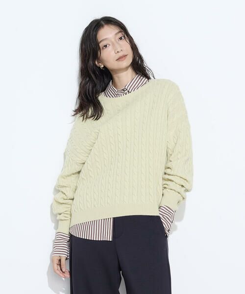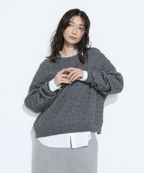《デザイン》総ケーブルのニットプルオーバーです。ラクーンとアンゴラ混の柔らかな風合いでケーブルとの相性が抜群です。身幅を広くすることで、程よい抜け感のある着こなしができシャツ合わせでも丁度良いネックラインと着丈になります。《素材》ラクーン、アンゴラをブレンドした柔らかな風合いと起毛感が特長です。軽く、暖かな着心地で春先まで使えるベーシックなケーブル編みです。