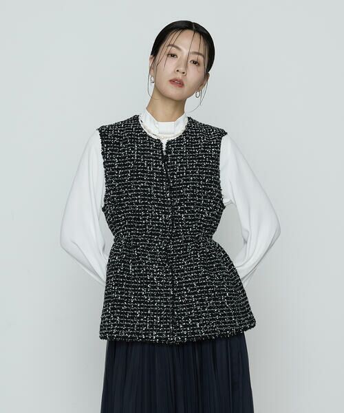 華やかで上質なスペシャルツイードを使用したキーネックカラーツイードジレです。