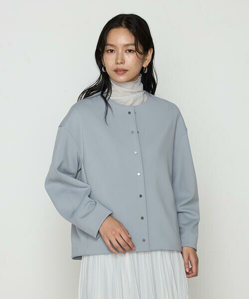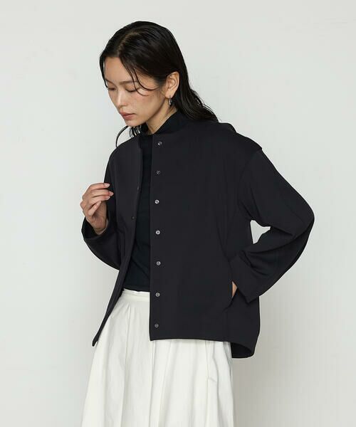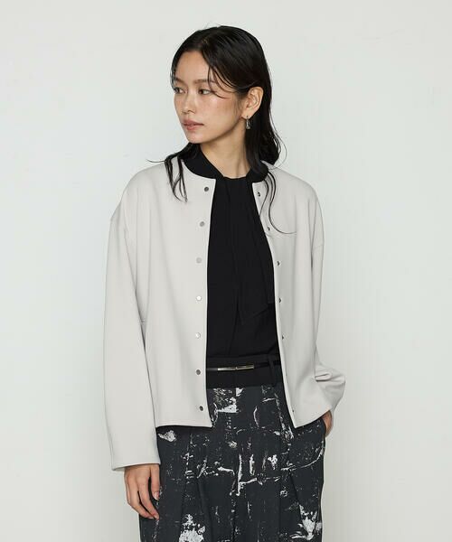 《デザイン》ゆったりとしたシルエットで、さらっと羽織れるジャージーショートジャケットです。フロント部分がメタルスナップ仕様になっていて、小さめのメタルがアクセントになっています。身頃や袖のシルエットにもこだわり、フロントを開けても閉じても様になるよう、つくっています。《素材》適度な肉感としなやかで、はりのある質感が特長のダンボール素材です。キックバック性が高く、テンションがありながら軽量なのもポイントです。しわになりにくくお手入れしやすい素材です。
