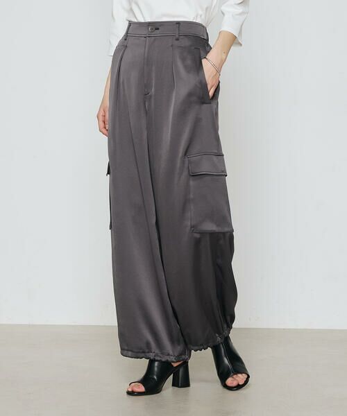 シルクのように艶感のあるサテンでつくるリラクシーなサテンカーゴパンツです。
