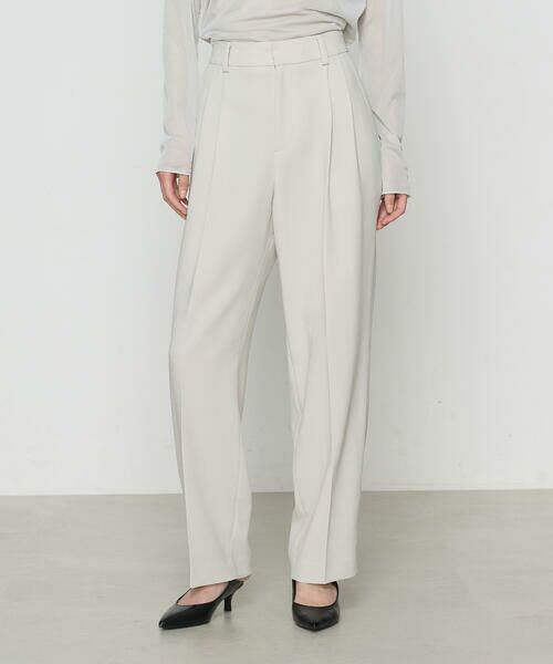 2タックの程よい分量のパンツはドレープ性のある素材によりきれいに落ちて脚長に見える絶妙なシルエットが旬な印象です。