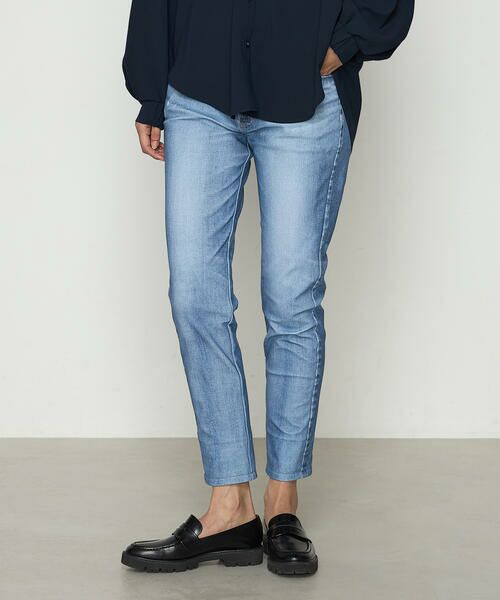 裾に向かって適度に細くなるスリムなシルエットに加え脇に向けて色が濃くなることで、視覚効果で脚の細見せが期待できます。