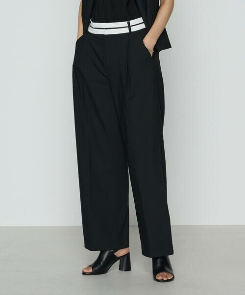 主にメンズのスラックスの内側のディテールであるマーベルトをデザインとして表に出し白に黒のラインでアクセントになると共にマニッシュな印象にしてくれます。
