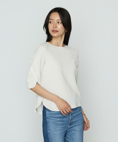 ジャージーの一大産地として有名な和歌山県の工場で希少なローゲージコンピューター編機を用いて、独特の凹凸(ポコポコ模様)を表現しています。