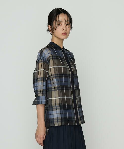 上品なシルクチェックでつくるマニッシュムードなビックシルエットシャツです。