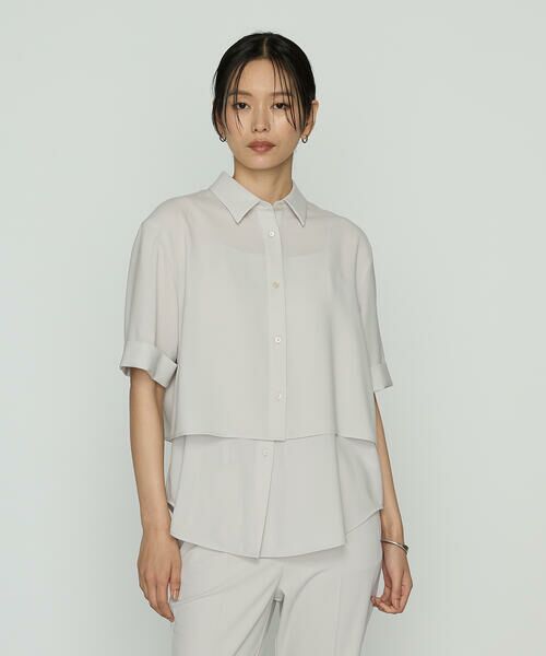 幅広い着こなしが楽しめるシャツとキャミソールがセットになったマルチレイヤードアイテムです。