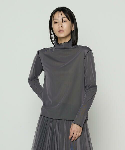 《デザイン》コムサ定番のチュールスカートのトップスバージョンです。内側のトリコット生地はドライなタッチで重ね着しても肌にまとわりつかず、さらりと着られます。ストレッチ性も高く、快適に着やすくしています。ソフトチュールスカート(商品番号:15-38FM18-205)に素材感を近いものにしているので、セットアップでもお楽しみください。リバーシブルの良さはそのままに、チュール面を表にするとシャンブレーのように見える二色の色が重なりが奥行きを生み、柔らかい印象になります。トリコット面を表にすると、梨地のような表面でシャープな雰囲気になります。素材感の差と裏表の色の違いが楽しめます。《素材》非常にソフトな柔らかな風合いと滑らかで流れるような手触りが特長のチュールです。編み目の細やかさと程良い光沢が繊細かつ高級感のある素材です。ストレッチの効いたトリコット素材です。トリコットでありながら梨地のような表面感が特長で、超軽量で軽やかな素材です。