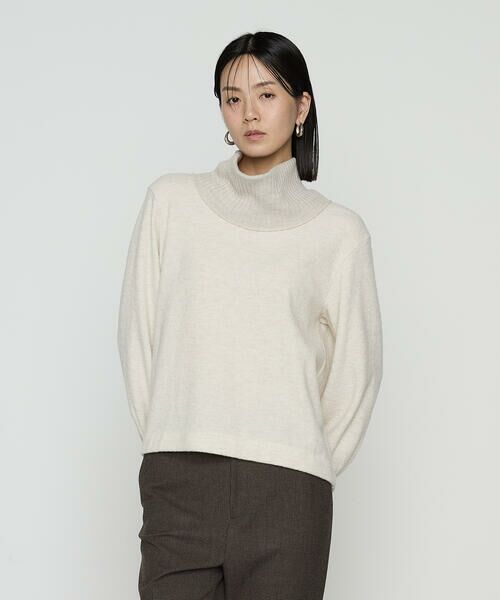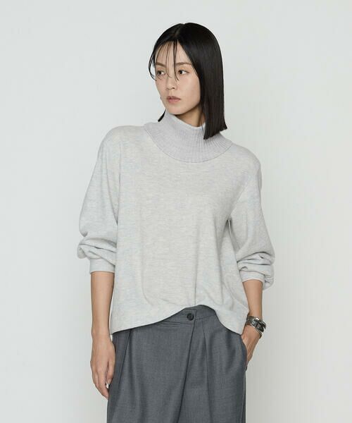 スヌードは高さがあり、付けるとゆったりとしたオフタートルのようなシルエットになります。