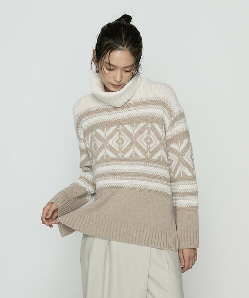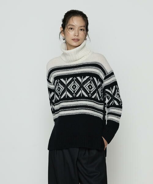 北欧ノルディック柄をコンテンポラリーにアレンジしたスヌード付きクルーネックプルオーバーです。
