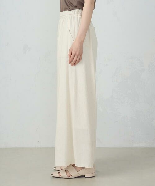 《デザイン》ナチュラルで優しい、爽やかなベーカータイプのワイドパンツです。肌離れのよい吸湿速乾性に優れた素材は、これからの夏の蒸し暑さの中でも、涼しくはいて頂けます。ウエストは、快適でリラックス感のあるゴム仕様でありながら、内側には、共地のドローコード付きで、サイズの調整が可能な作りになっています。蒸し暑い日本の夏に向いている、汎用性の高いパンツです。《素材》麻混でありながら、チクチクしにくく、シワになってもそれが気にならない、ナチュラルで優しい表情を持った素材です。……………………透け感:なし厚さ:ふつう伸縮性:なしポケット:あり裏地:07カラーのみあり……………………