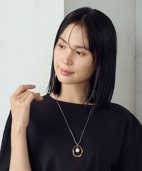 上品に輝くオーバルメッキパーツと1.2cmのプラスチックパールを組み合わせ、