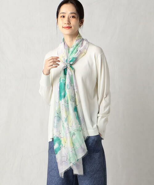 柔らかな水彩画風のフラワープリントストールです。バラの花を水彩タッチで抽象画風にした大胆なデザインですが、柔らかな色使いなので、優しい印象で合わせやすいストールです。とても細い糸を使用し、軽くふんわりとしたつけ心地の良さがポイントです。レーヨンシルクの控えめな光沢感や、程よい透け感など、こだわりの素材です。手作業のためサイズ感に個体差がございます。ご了承くださいませ。