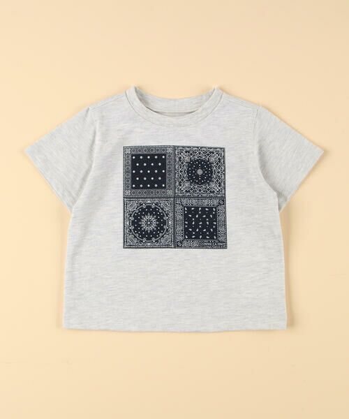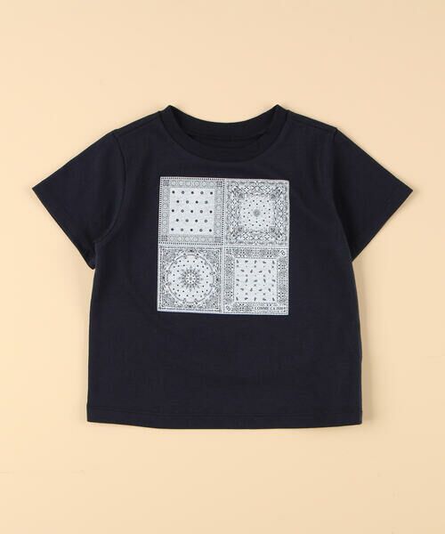 《デザイン》前身頃にバンダナ柄をプリントした1枚で主役級の半袖Tシャツです。4つのバンダナ柄と下端にコムサイズムロゴをさりげなく入れた、まるで1枚のバンダナ風にデザインしたプリント柄にしています。シンプルでベーシックな色なので男の子女の子問わず着られます。キッズ(品番:98-49TK33-205)にも展開していますのでお揃いが楽しめます。《素材》やわらかで肌触りが良く、伸縮性、吸水性に優れた天竺素材です。ご自宅で洗濯機洗いが可能です。#コムサベビー#ベビートップス