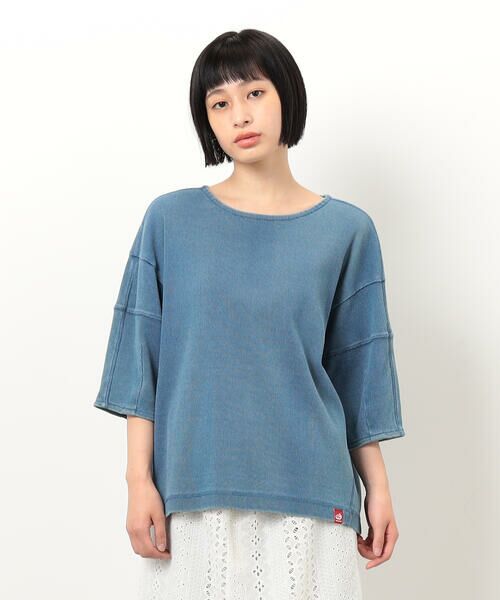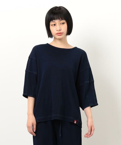 ◆ONIGIRI(おにぎり)のリブランタン袖プルオーバー◆《デザイン》リブ素材の半袖プルオーバーです。ランタン型のふんわりとした袖がポイントで、袖丈は二の腕がすっぽり隠れる五分丈です。程よい厚みで身体のラインを拾わず、1枚で様になるアイテムです。脇から裾にかけて斜めに入れた切り替えと振りステッチがアクセントとなり、シルエットをスッキリと見せてくれます。裾の赤いネームがポイントです。《素材》表面に凹凸感のあるリブ編み素材なので、より伸縮性があるのが特長です。インディゴ染料で染めていますので、洗うたびにデニムのような風合いの変化を楽しめます。デニムと同じように製品洗い加工にて色落ちをさせて、23:サックスと09:ネイビーの色の違いをだしています。《セットアップ対応》同素材のパンツ(品番:52-52PK83-205)と合わせてセットアップとしてお召しいただけます。……………………透け感 : なし厚さ:普通伸縮性:あり光沢感:なし裏地:なしポケット:なし洗濯方法:洗濯機洗い可…………………