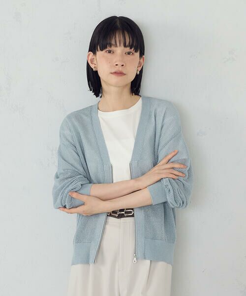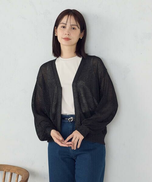 《デザイン》軽い・シワになりにくい!ラメ入りメッシュカーディガン。メッシュ編みで暑苦しい印象にならず、きらっと光るラメ糸が軽さをプラス。Tシャツやタンクトップの上に羽織って秋の先取りコーディネートを楽しめます。残暑が厳しく着る服に悩む今の時期にぴったりなカーディガンです。パンツ&スカートにも合わせやすい丈感です。袖口に程よくたまるボリュームスリーブです。肌が透け過ぎない細かなメッシュ編みです。メッシュなので軽くて、シワにもなりにくいのがポイント。《素材》細いラメ糸を使用しているのでチクチクしにくいです。柔らかくさらっとした風合いのニットで、今から秋まで着れる素材です。……………………透け感:あり厚さ:普通伸縮性:あり光沢感:ラメ糸ありポケット:なし洗濯方法:手洗い可能……………………
