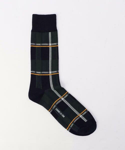 《デザイン》大きめのチェック柄をアシンメトリーに配置したソックスです。アイビーテイストな仕上がりで、足元に程良いアクセントを付けてくれる一足です。《素材》肌触りが良く、吸水性に優れた綿と速乾性に優れたポリエステルの混紡糸を使用しています。《取り扱い注意》ドロ汚れがひどいときは洗濯前に軽く水洗い。簡単に汚れを落としておきましょう。染み込んだ汚れの場合は、洗濯液(洗剤を30℃位のぬるま湯によく溶かしたもの)に1時間ほどつけおきするとよいでしょう。但し、商品によっては色落ちする場合もありますので、濃淡の配色があるものは、絡みや摩擦を防ぎ、洗濯機から取り出しやすくなります。