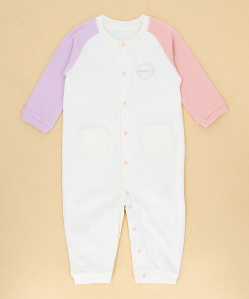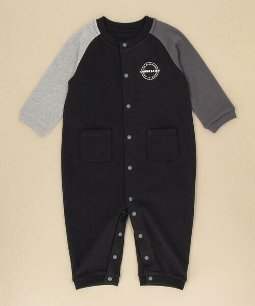 ラグランスリーブの配色が目を引く、おしゃれな長袖ツーウェイオールです。