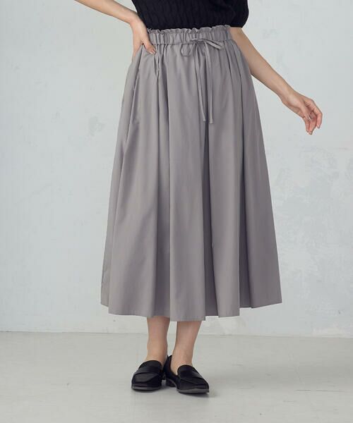 《デザイン》ポリエステルタフタ素材を使用したタックギャザースカートです。ソフトな質感と落ち感が魅力で、動くたびにふわりと揺れるシルエットが、品のある存在感を演出します。ウエストは総ゴム仕様でストレスフリーな穿き心地。共布のリボンをきゅっと結べば、さりげなく女性らしさとモード感が漂います。タックとギャザーの分量感にこだわり、甘すぎず、大人が楽しめるバランスに仕上げました。ブラウスやニットと合わせてきれいめに、Tシャツやスウェットでカジュアルダウンしても◎季節のはじまりに、着こなしの主役になる1枚です。《素材》程よいハリ感のあるポリエステルタフタです。ハリ感がありながら落ち感も兼ね備えているので美しいギャザーやドレープを生み出します。ソフトで繊細な表面感と、軽量な素材感が特長です。……………………透け感:なし厚さ:薄手伸縮性:なし光沢感:なし裏地:あり洗濯方法:洗濯機可……………………