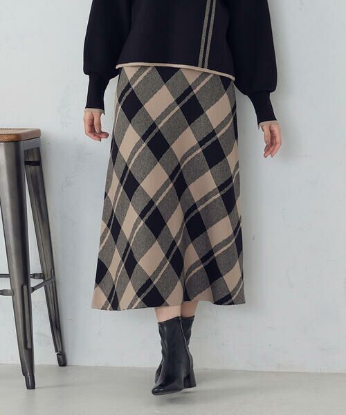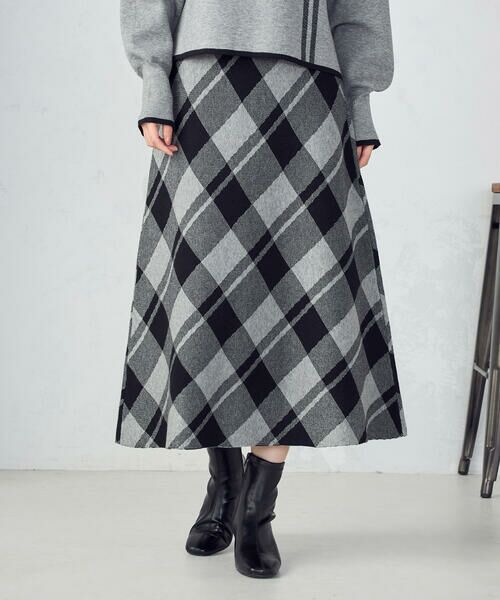 《デザイン》秋冬のクラシカルなスタイルを演出するバイアスチェック柄のニットスカートです。裾に向かって綺麗に広がるAラインシルエットです。腰回りはスッキリとしてますが、程よい厚みがあるのでラインを拾いにくいです。ニット素材なので動きやすくストレスフリーで着こなせます。アウターの中に着たときもチェック柄が様になる秋冬の季節にこれ一枚でコーディネートが映えるニットです。《素材》弾力のあるもちっとした素材です。しっかり肉感のある暖かみのあるニットです。チクチクせず滑らかな質感で、着心地の良さが魅力です。《セットアップ対応》同素材のニット(品番:12-76KM10-205)とセットアップとしてお召しいただけます。……………………透け感:なし厚さ:中肉伸縮性:ありポケット:なし洗濯方法:手洗い……………………
