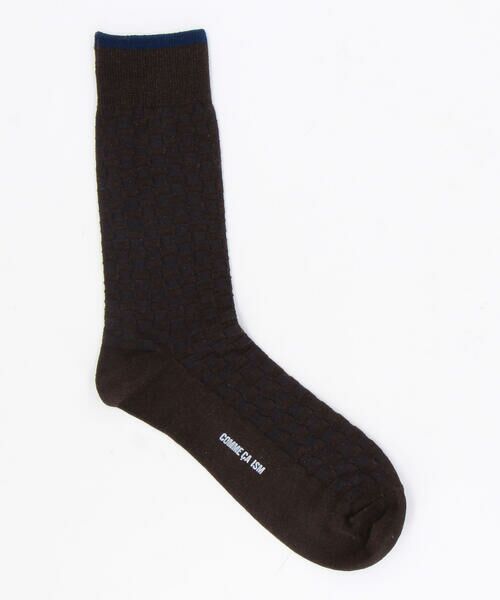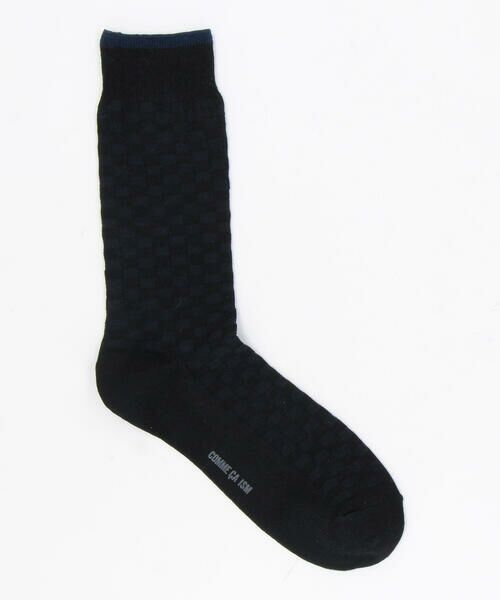 《デザイン》シンプルで汎用性の高い、市松柄のドレスソックスです。柄を編で表現しているので上品な印象に仕上がり、ビジネスシーンで人気のアイテムです。履き口部分には配色でラインを入れアクセントにしています。《素材》肌触りが良く、吸水性に優れた綿と速乾性に優れたポリエステルの混紡糸でサラッと履き心地の良いソックスです。《取り扱い注意》濃い色の物は淡色の物と分けて洗い、蛍光剤の入っていない洗剤を使用して下さい。……………………透け感:なし厚さ:ふつう伸縮性:あり光沢感:なし裏地:なし洗濯方法:洗濯機洗い可……………………