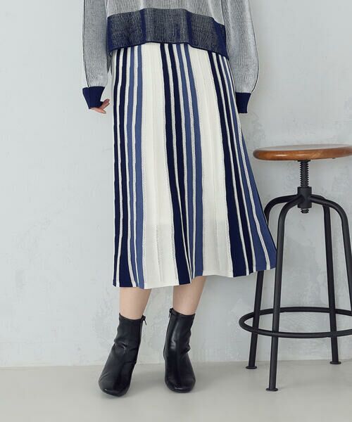 マルチストライプ配色ニットスカート / セットアップ対応