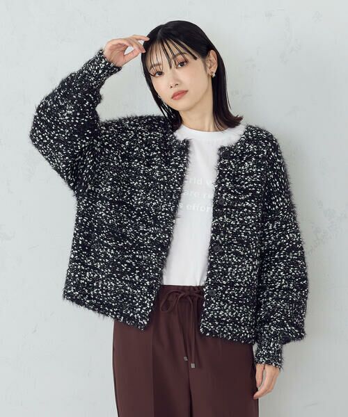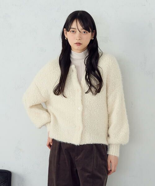 《デザイン》ポコポコとしたネップの糸と毛足のあるシャギー糸をミックスした表情のあるニットです。着るだけで映える旬なニットです。トップスとしてもカーディガンとしても使える2WAY仕様です。気分に合わせて着まわせます。ローゲージでボリューム感があり、ゆったりしたシルエットです。ボリュームのある袖でメリハリのあるバランスが○《素材》ポコポコとしたネップの糸に毛足のあるシャギーの糸でふんわりと表情のある編地で肉感を持たせた編地です。……………………厚さ:中肉伸縮性:ありポケット:なし洗濯方法:手洗い可……………………