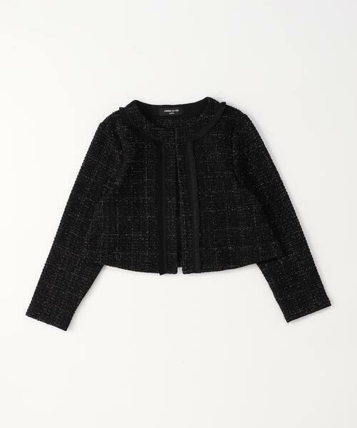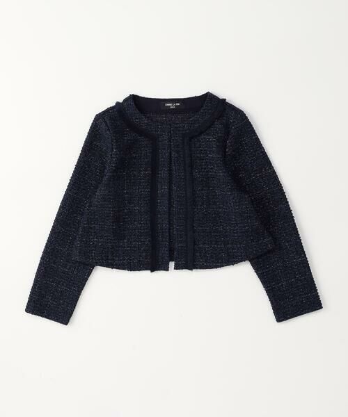 【オンライン限定カラー:ネイビー】ラメ混 ツイード調 ジャージー ボレロ(140-160cm)