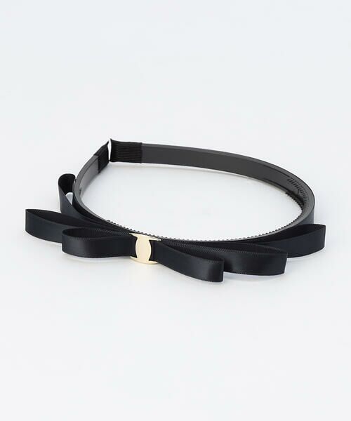 メタルパーツのついたサテンリボンのカチューシャです。