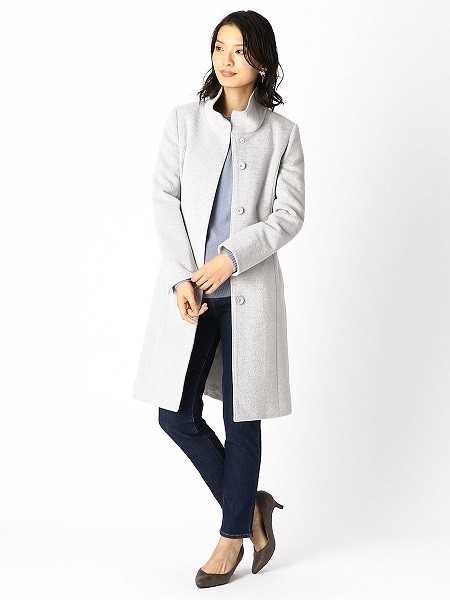柔らかく、しなやかさが特徴。 アンゴラ混率が高いビーバー素材を使用。 広めのスタンドカラーはクラシカルでハンサムな印象に。 ライトグレー×サックスの組み合わせが新鮮! 定番のデニムをチョイスして、シンプルなベーシックスタイルに。