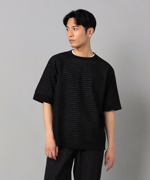 ボーダー状のメッシュ編みにすることで、上品なシアーニットに仕上げています。