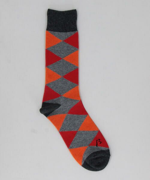 大胆で大柄なダイヤ柄のクルーソックスです。配色もβメンらしい色相いのデザインになっています。アイコンのβマークはブラック一色に統一させ引き締まった印象に仕上げています。ソフトな履き心地はいつも通りのベーシックソックスです。
