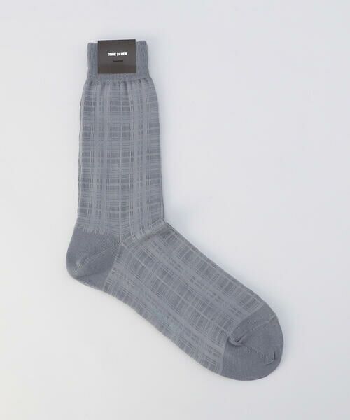 《デザイン》チェック柄のクルーソックスです。同系色の表糸と裏糸で繊細にチェック柄を表現した上品な柄が特長です。やや薄手の編地で、ビジネスでもカジュアルでもご使用いただけます。《素材》履いた時にさらりとした肌ざわりで、程よく伸縮する糸を使用しています。柔らかくふっくらした編地で、履き心地がとても良いのが特徴です。