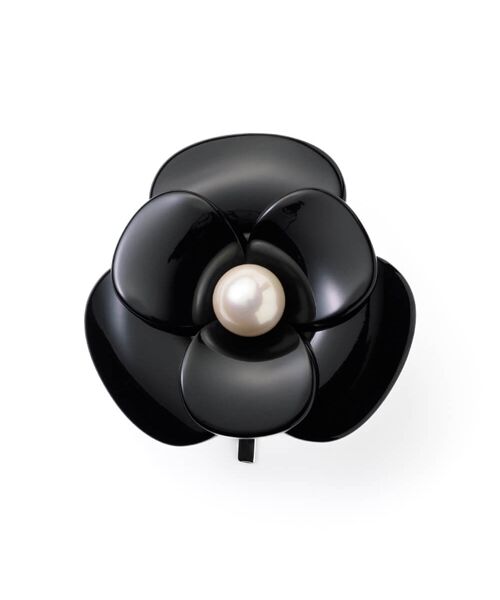 光沢の美しい黒のカメリアモチーフとシェルパールのコントラストが華やかなポニーフック。