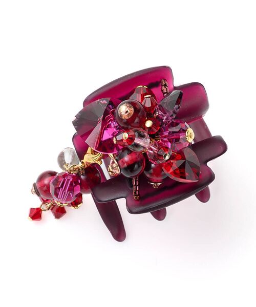 ぎゅっとまとめたビーズが透き通るような輝きを放つクリップ。揺れるたびに光を受けて艶やかにきらめくフリンジが、ヘアアレンジに華やぎを添えます。