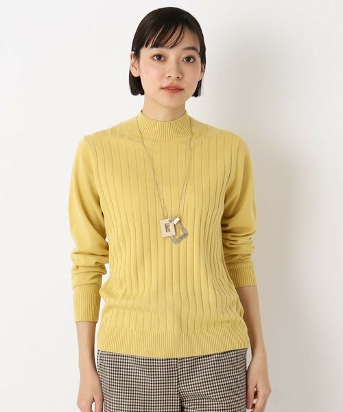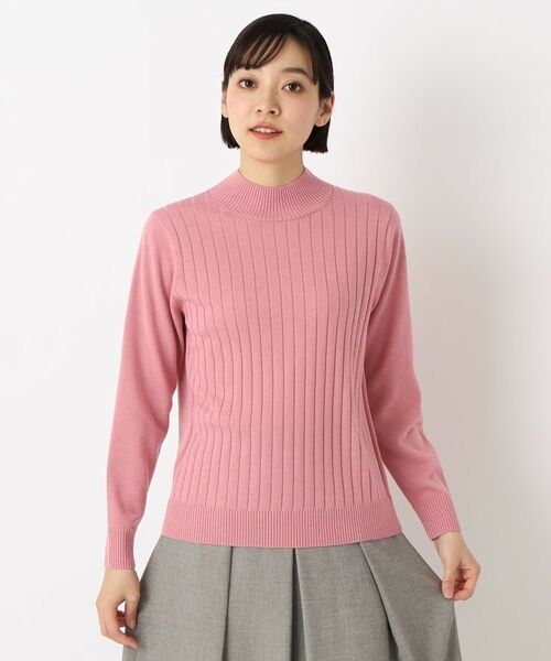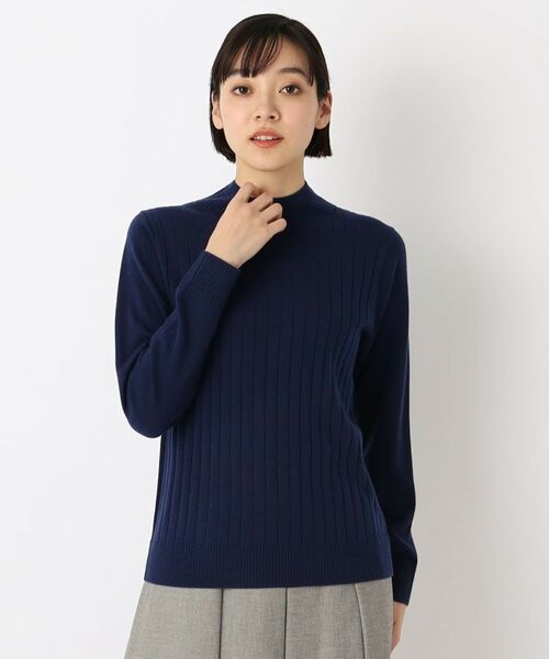 洗練されたスタイルを引き立てるハイネックのプルオーバーはフロントの編地がワイドリブになっていていつもとちょっと違う華やかさがあります。
