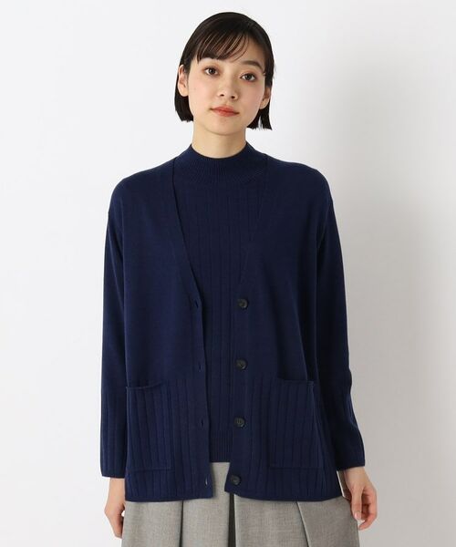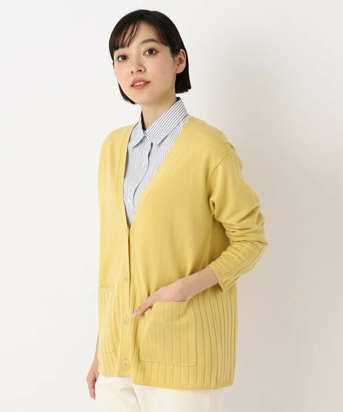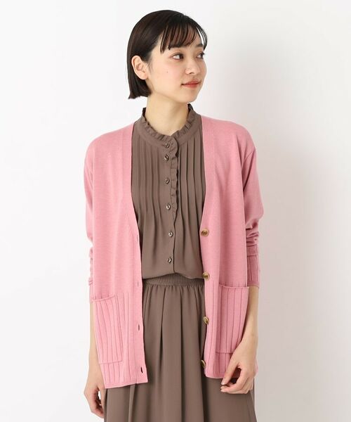 裾部分と袖口にワイドリブでアクセントを付けている事で、いつものカーディガンがちょっと華やかに見えます。