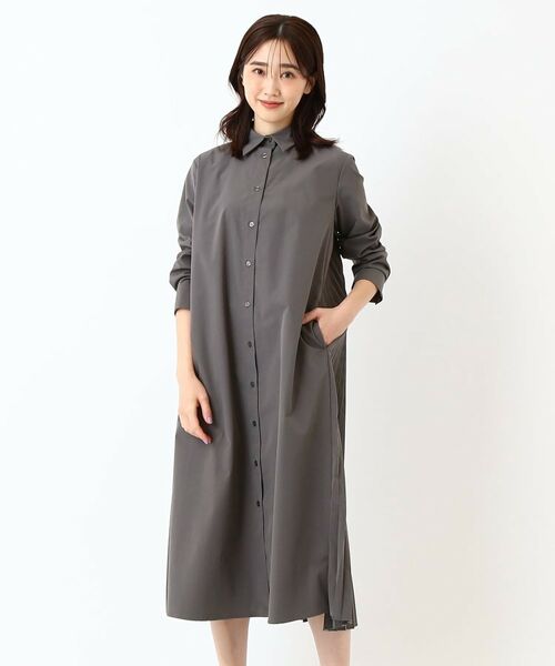 前から見るとシャツ衿でシンプルな洗練されたイメージ、後ろはヨーク下からの長いプリーツ加工が施されています。